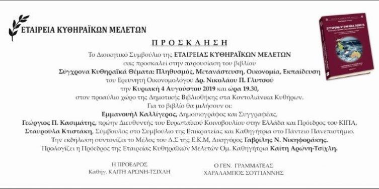 Post navigationΠροηγούμενοPrevious post:ΝΕΟ ΔΙΟΙΚΗΤΙΚΟ ΣΥΜΒΟΥΛΙΟ ΣΤΗΝ ΕΤΑΙΡΕΙΑ ΚΥΘΗΡΑΪΚΩΝ ΜΕΛΕΤΩΝΕπόμενοNext post:ΒΡΑΒΕΙΟ ΑΚΑΔΗΜΙΑΣ ΑΘΗΝΩΝ ΣΤΗΝ ΑΝΤΙΠΡΟΕΔΡΟ ΤΗΣ ΕΤΑΙΡΕΙΑΣ ΚΟΥΛΑ ΚΑΣΙΜΑΤΗ