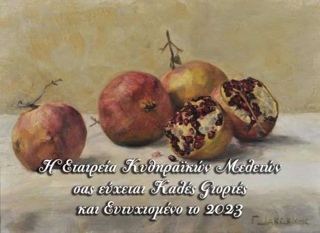 Η Εταιρεία Κυθηραϊκών Μελετών πραγματοποίησε στα Κύθηρα τις παρακάτω εκδηλώσεις: 1. ΠΑΡΟΥΣΙΑΣΗ ΤΙΜΗΤΙΚΟΥ ΤΟΜΟΥ ΤΟΥ ΚΑΘΗΓΗΤΗ Ν. ΠΕΤΡΟΧΕΙΛΟΥ Στις 30 Ιουλίου 2022 στη Δημοτική Βιβλιοθήκη (Κοντολιάνικα Κυθήρων) έγινε η παρουσίαση του Τιμητικού Τόμου για τον Καθηγητή Νίκο Πετρόχειλο. Τον τόμο παρουσίασαν: Η Καίτη Αρώνη-Τσίχλη, Πρόεδρος της Εταιρείας, η οποία αναφέρθηκε στο έργο, την επιστημονική και…